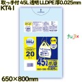 【新規受付不可】取っ手付きポリ袋 45L 透明 LLDPE 厚0.025mm 600枚(20枚×30冊)/ケース KT41 ハウスホールドジャパンペーパータオル、紙エプロン、クッキングペーパー、グローブなど業務用消耗品を販売している通販サイト | ||||||||